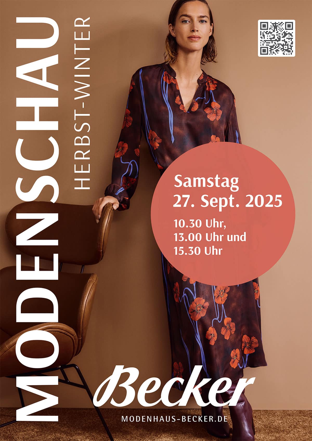 Modenschau am Samstag, den 27. Sept. 2025 um 10.30 Uhr, 13.00 Uhr und 15.30 Uhr.